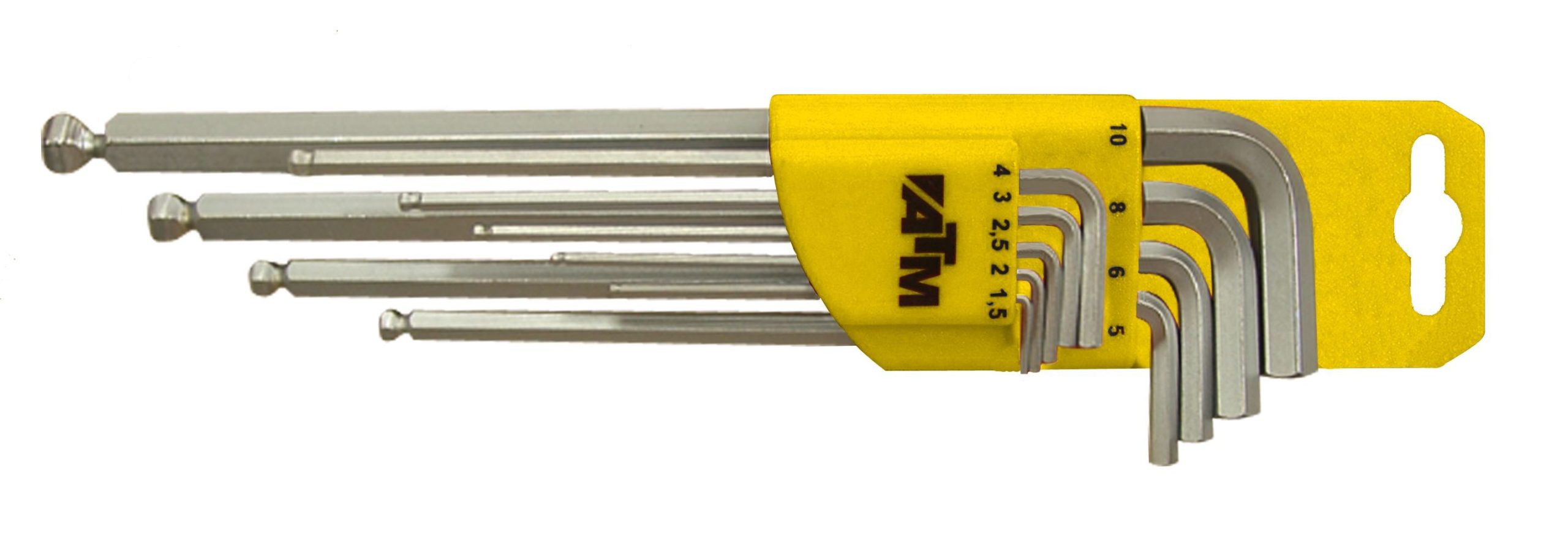 Acero Cromo-Vanadio niquelado ISO 2936 - DIN 911. Soporte plastico amarillo con colgador.